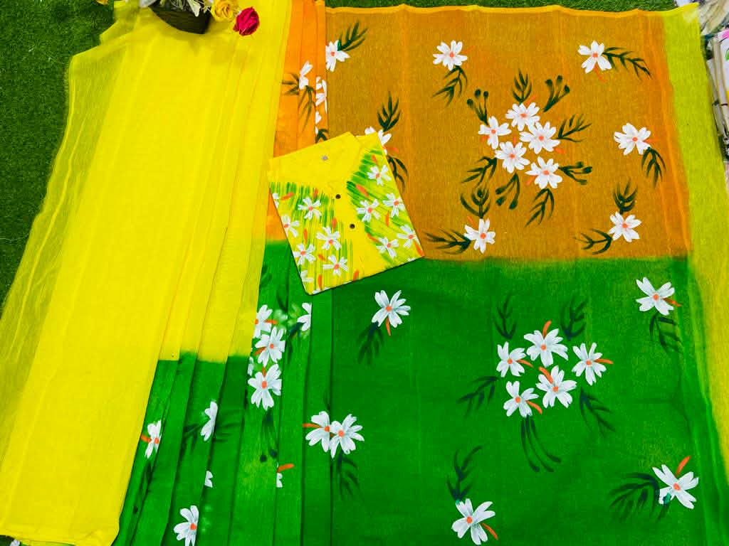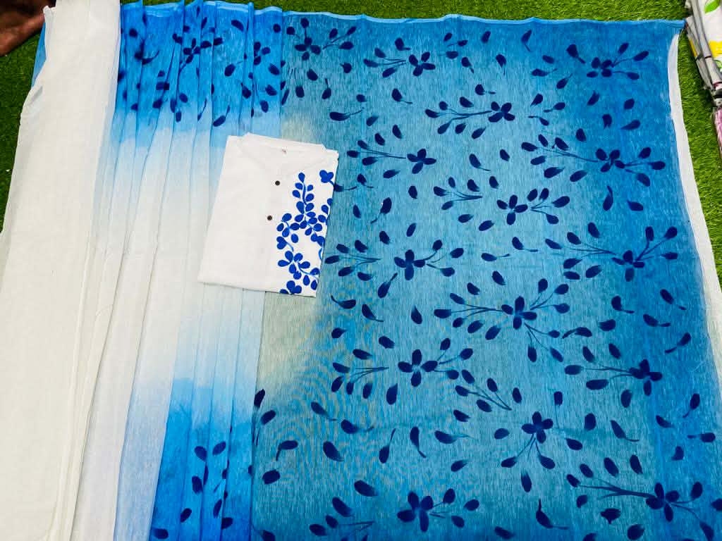 Exclusive Design Hand Print Couple Dress For Sweet Couple Product details : Work: Hand Print Saree & Panjabi, Gender: Women & Men, Product Type: Couple Set, Saree Fabrics: Half Silk Dhupian Saree Saree Size: 12 haat (No blouse pcs), Panjabi Fabrics: Dhupian Cotton Mixed, Panjabi Size: 38/40/42/44/46, Factory: We have our own factory for printing, get authentic products. Color & Work: Hand print work with original colors, Fashionable and comfortable for summer.
