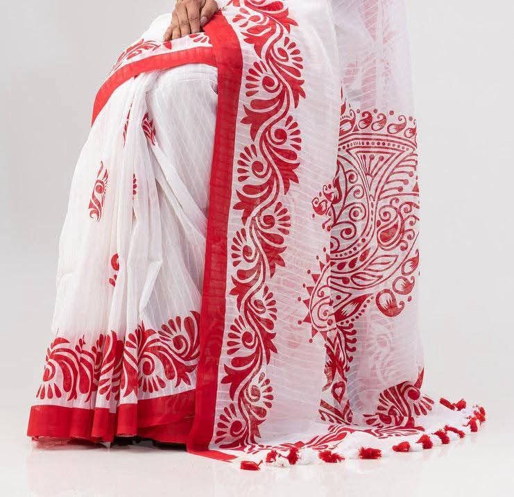 ঈদ এবং কি যে কোন অনুষ্ঠানের জন্য একদম পারফেক্ট একটা শাড়ি 👍 হাফসিল্ক এর উপর স্কিন প্রিন্ট করা জামদানি শাড়ি প্রতিটি শাড়ি ১৩ হাত মনো মুগ্ধকর ডিজাইন ও আরামদায়ক ১০০% গুণগত মানসম্মত কাপড়