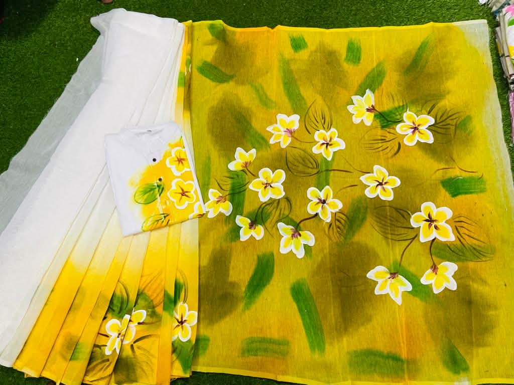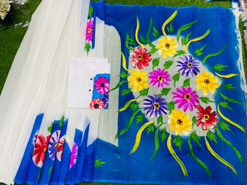 Exclusive Design Hand Print Couple Dress For Sweet Couple Product details : Work: Hand Print Saree & Panjabi, Gender: Women & Men, Product Type: Couple Set, Saree Fabrics: Half Silk Dhupian Saree Saree Size: 12 haat (No blouse pcs), Panjabi Fabrics: Dhupian Cotton Mixed, Panjabi Size: 38/40/42/44/46, Factory: We have our own factory for printing, get authentic products. Color & Work: Hand print work with original colors, Fashionable and comfortable for summer.