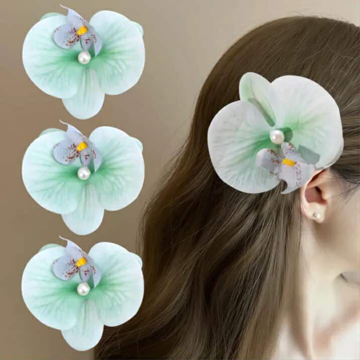 Cute Cloth Flower Hair Clip Pearl Korean Style Orchid Flower Hairpin Butterfly Orchid Headdress Girl Hair Clip Women