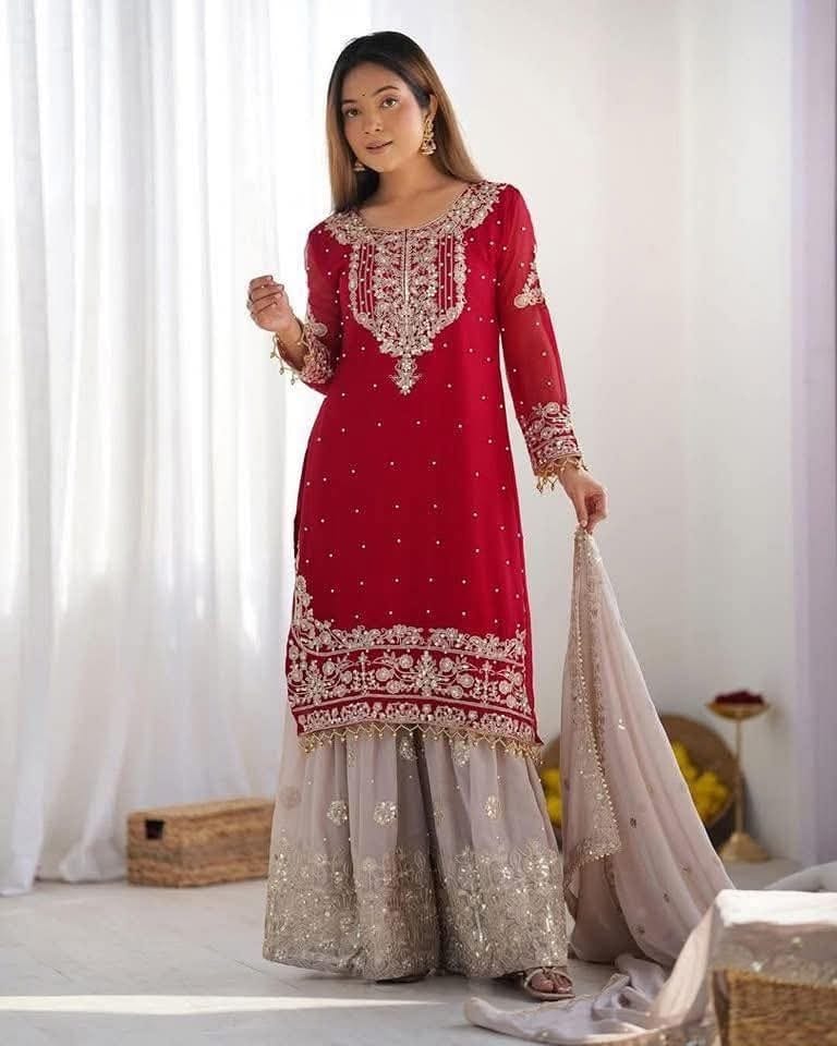 অনলাইনের ভাইরাল গারারা কালেকশন 😍 👉ফেবরিক্স - ইন্ডিয়ান লাক্সারি জর্জেট। 👉দুই পাশে কাজ থাকবে!! 👉 কালার দুই টা মেরুন/হলুদ!! 👉বডি সাইজ-৩৮,৪০,৪২,৪৪ পর্যন্ত। 👉 লং - ৪৩ ইঞ্চি। 👉ওরনা:ইন্ডিয়ান লাক্সারি জর্জেট। 👉ইনার: প্রিমিয়াম বাটার সিল্ক। 👉প্যান্ট : ইন্ডিয়ান লাক্সারি জর্জেট।